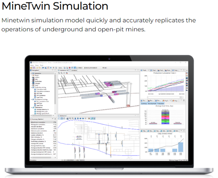 MineTwin provides a true digital twin of the system and compare actual production performance parameters from MineProd against the optimal mine operating model on the fly.